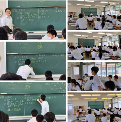 内容は、化学変化につてですが、「発熱反応」「吸熱反応」の実験がとても分かりやすく、生徒たちも楽しんで取り組んでいました。